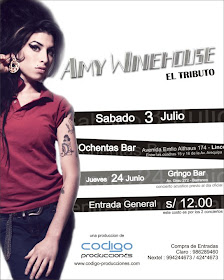 Quiero invitarlos a mi concierto "TRIBUTO A AMY WINEHOUSE" que ya ha cumplido un año de estar juntos como banda, e interpretando los temas de la magnifica cantante Britanica Amy Winehouse. Ese dia tendremos un repertorio de ...temas de sus discos FRANK &